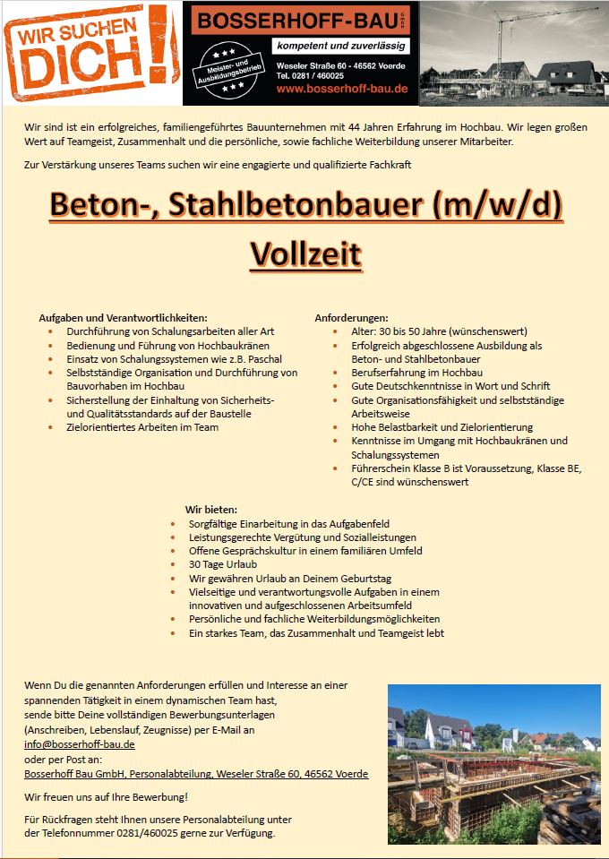 Beton-, Stahlbetonbauer (m/w/d) - Vollzeit